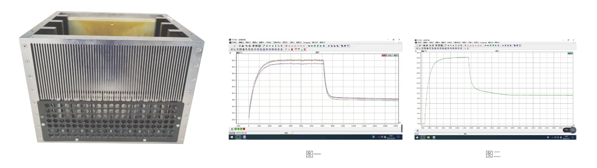 圖二: 環(huán)境溫度70℃,機(jī)箱內(nèi)部器件發(fā)熱功率70W滿功率運(yùn)行,器件溫度升至136℃,打開(kāi)壓電平面風(fēng)扇( 型號(hào)為YDFS-J12Z10 ),器件溫度降至97℃。